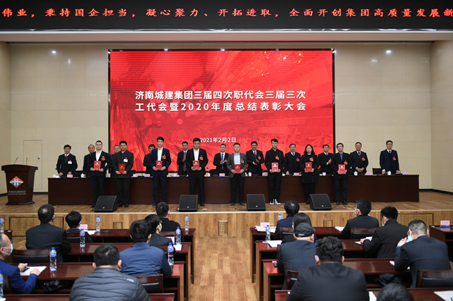 下午15時,大會開幕,全體起立,高唱國歌。牟曉巖總經(jīng)理代表領(lǐng)導(dǎo)班子向大會作集團年度工作報告,全面總結(jié)回顧了2020年和“十三五”期間取得的發(fā)展成績,明確了“十四五”發(fā)展規(guī)劃目標(biāo),安排部署了2021年重點工作。報告指出,2020年是極不平凡的一年,集團黨委帶領(lǐng)全體干部職工攻堅克難、砥礪奮進,統(tǒng)籌推進疫情防控和生產(chǎn)經(jīng)營工作,全年完成產(chǎn)值203億元,中標(biāo)工程總造價206億元,同步實現(xiàn)“十三五”發(fā)展規(guī)劃各項主要指標(biāo)。集團綜合實力位居全國市政行業(yè)前三名、山東省建筑企業(yè)(不含央企)第三位、濟南市市屬建筑企業(yè)第一位。